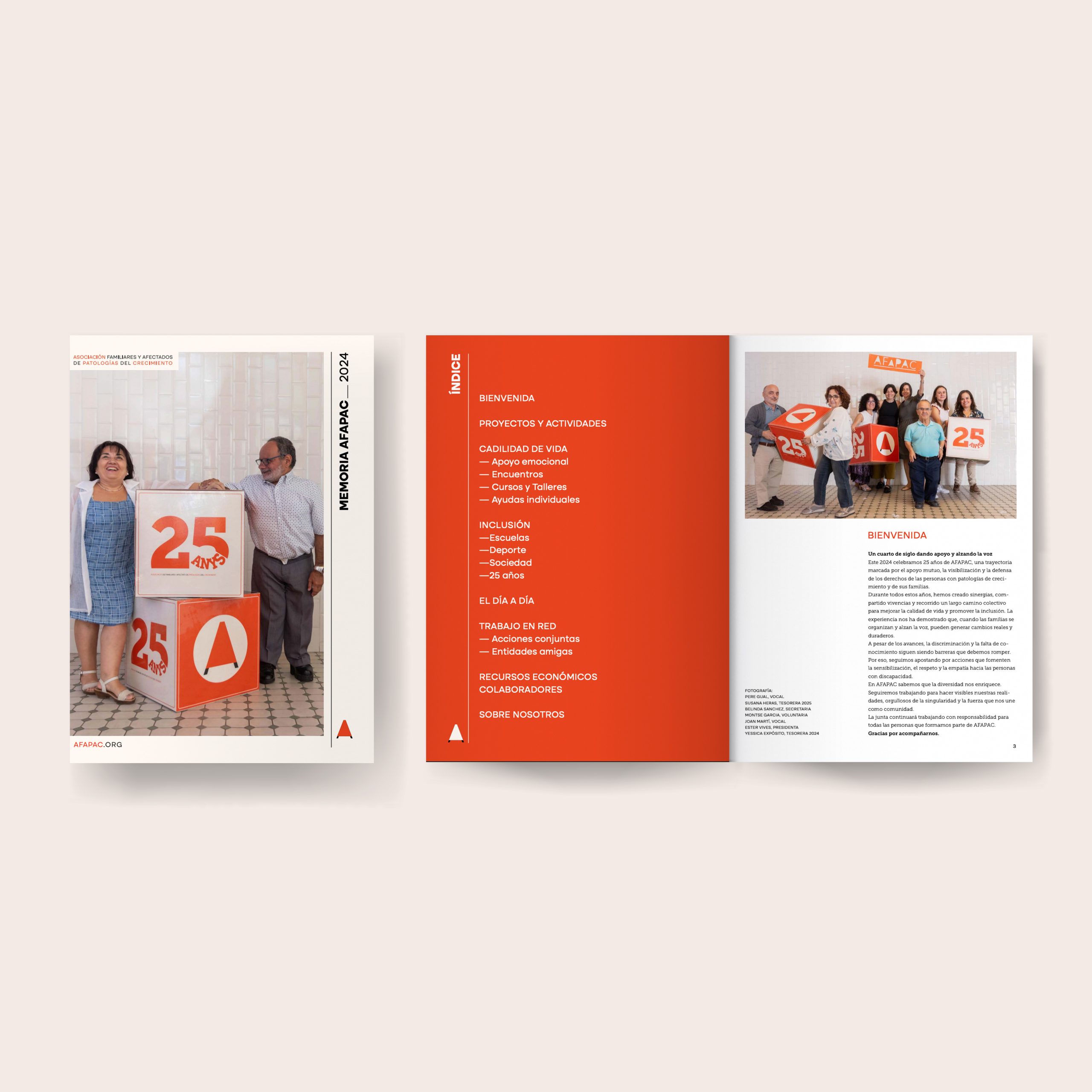 La memoria anual de AFAPAC se ha desarrollado poniendo especial énfasis en el cuidado de la identidad gráfica de la Asociación. A través de una plantilla coherente y personalizada, se garantiza una continuidad visual que refuerza el reconocimiento y la imagen corporativa de la entidad.